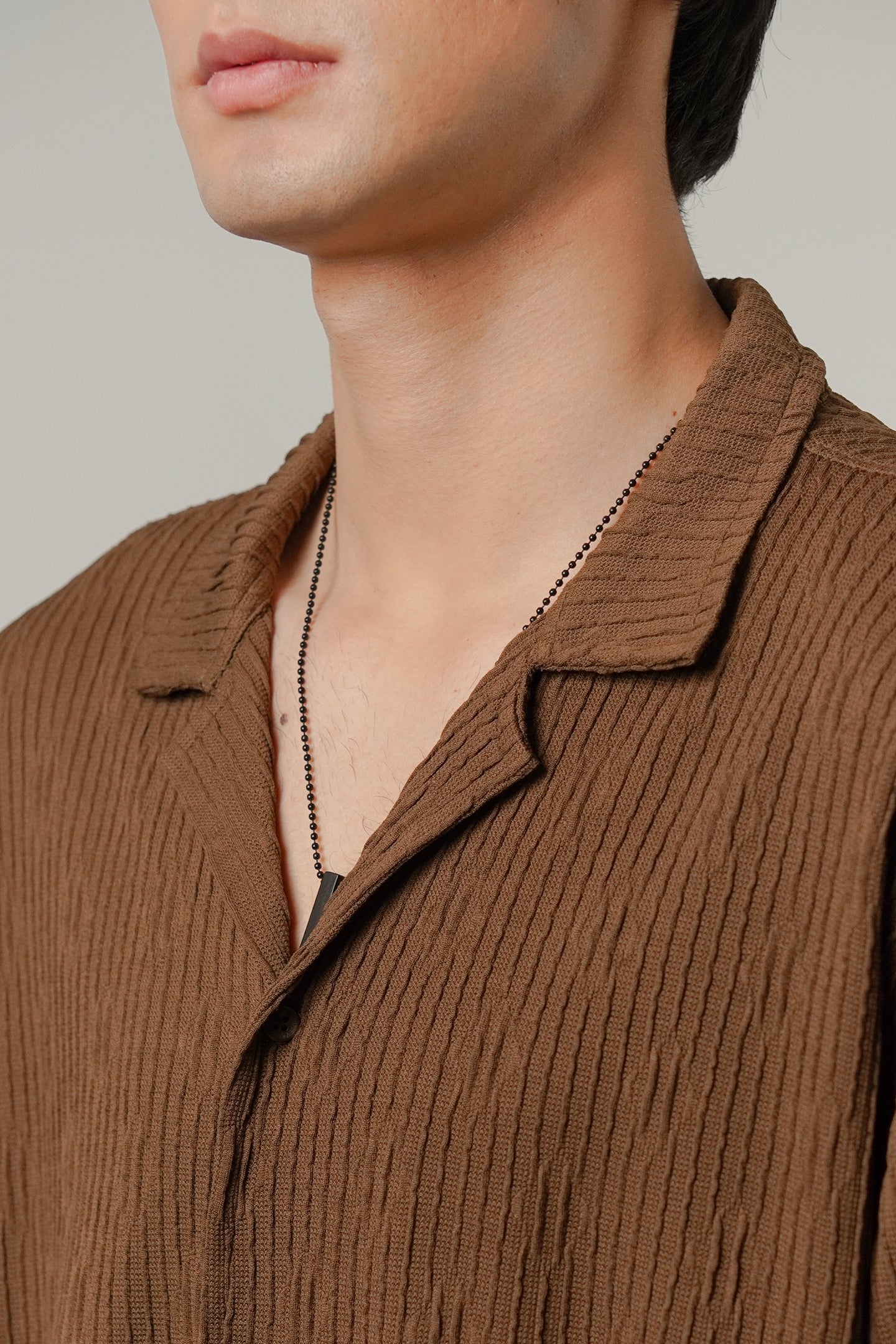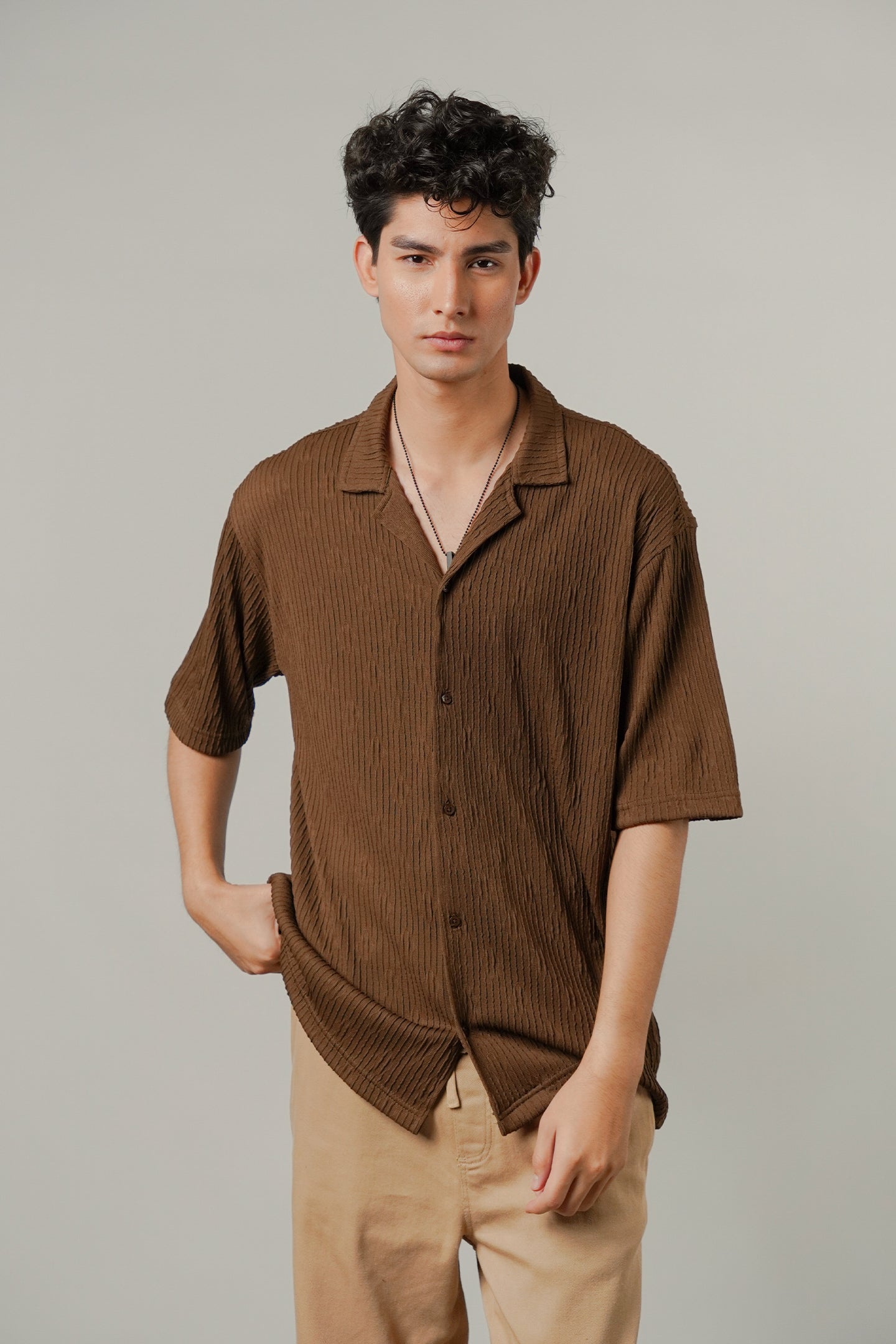 Textured Cuban Shirt - Brown - FA